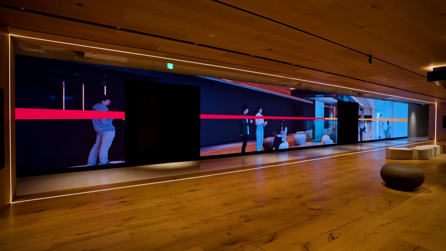 渋谷スクランブルスクエア内 MIXI GROUPのオフィスエントランスにある巨大LED(16K/横24m×高さ2.8m )に映し出される映像コンテンツ。MIXIが、エモーションとコミュニケーションで人々をつなげていき、世界中をワクワクや笑顔で満たしていく様子を描きました。